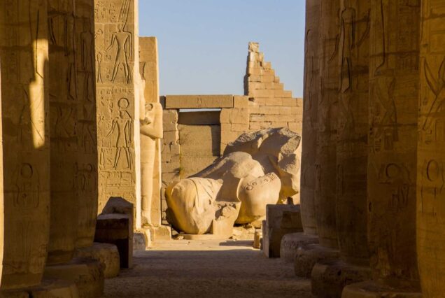 End your day at the Ramesseum, the mortuary temple of Ramses the Great. Walk among the massive fallen statues of the King, including the one that inspired Shelley’s famous poem, Ozymandias. The site feels like a peaceful ruin, allowing for a deep connection with the past.